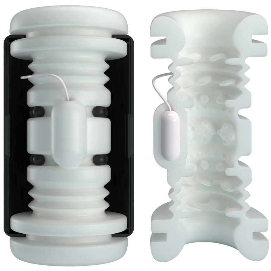 Genießen Sie tiefes und befriedigendes Vergnügen mit diesem Masturbator-Cup mit Vibration und mehreren Geschwindigkeiten. Dieses fantastische Männerspielzeug wird Ihnen ein viel intensiveres Erlebnis als sonst bieten, denn dank seines einzigartigen Klemmdesigns können die Cups auf beiden Seiten manuell zusammengedrückt werden, um noch mehr Vergnügen zu erzeugen. Und ultrarealistische Eintrittspunkte sowie gerippte und geriffelte Innenhüllen sorgen für das perfekte Penetrationserlebnis, während das Vibrationsdesign mit mehreren Geschwindigkeiten Ihnen maximale Empfindungen beschert. Genießen Sie den strukturierten Innenkanal, bis Sie einen intensiven Orgasmus erleben.